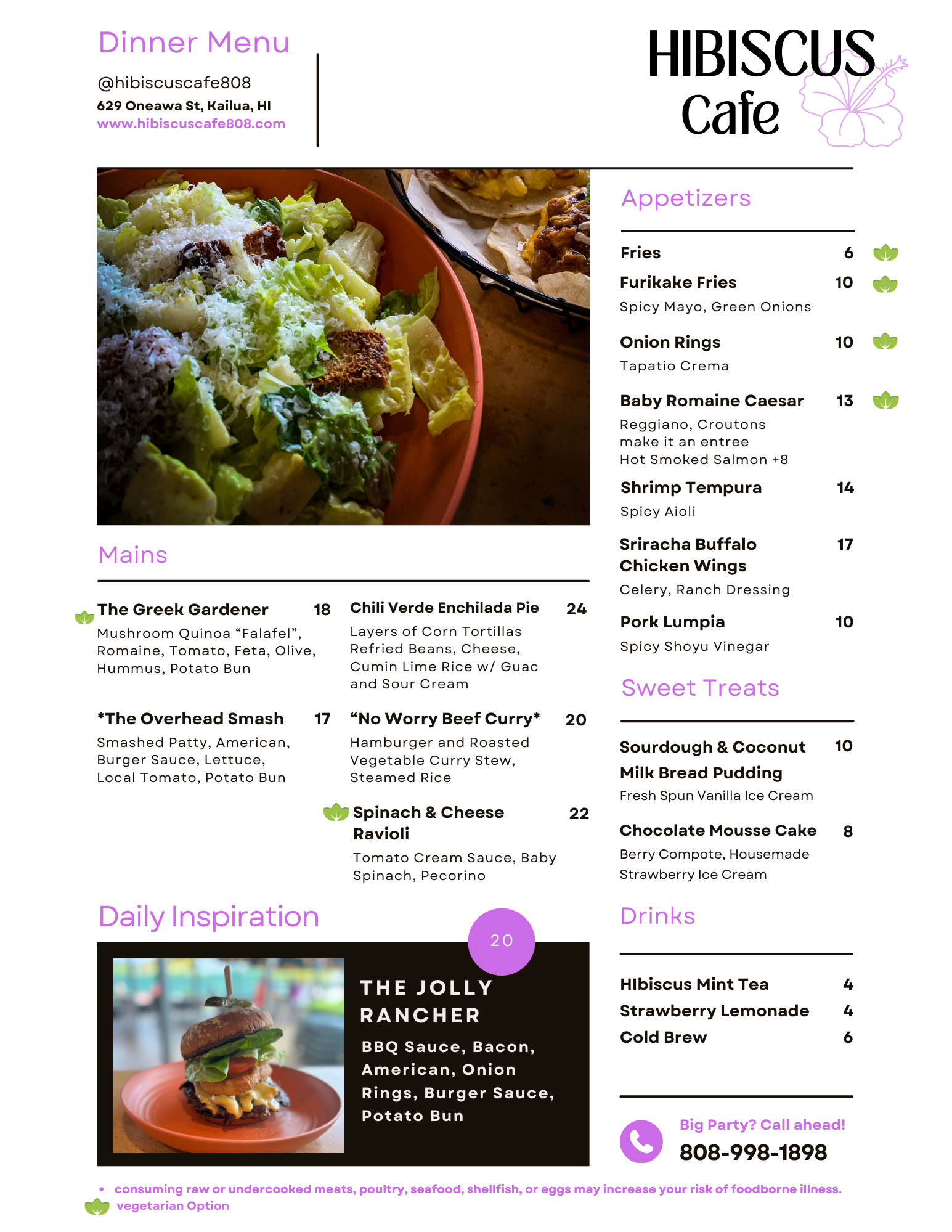 Our Menu Experience Brunch the Hibiscus Cafe Way! GET YOUR E-GIFT CARDS TODAY! Enjoy our dinner menu! Always Fresh. Always Delicious! GET YOUR E-GIFT CARDS TODAY!